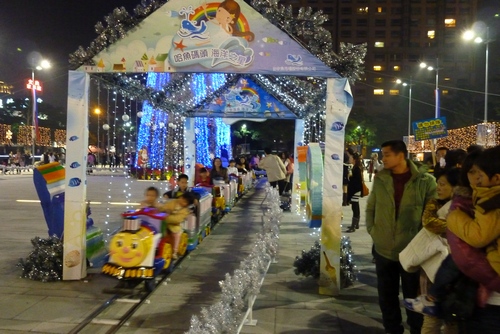 廣場有著免費小火車可坐,可是每天都排很長